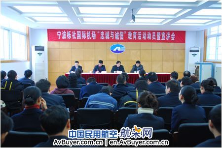 根据市委、市政府有关精神和市总工会统一部署,2月20日上午,宁波机场“忠诚与诚信”教育活动动员暨宣讲会在111会议室召开,各党支部书记、分工会主席、部分员工及教育活动办公室成员近100人参加了会议,会议由“忠诚与诚信”教育活动主任、工会办公室主任赵昌宝主持。