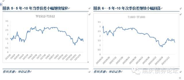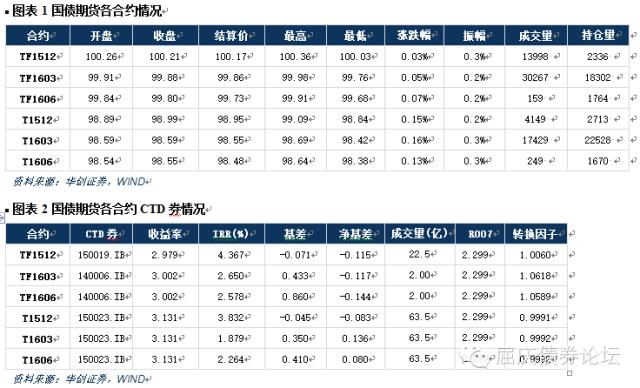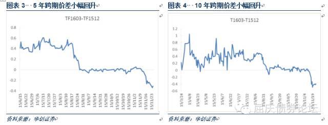 周三,国债期货开盘快速下行后又上行震荡,午盘前出现一波较大幅度下跌,涨幅回落,临近收盘又小幅上行。全天来看,5年主力合约TF1603上涨0.05%,对应收益率下行约0.7bp,10年主力合约T1603上涨0.15%,对应收益率下行约1.5bp。一级市场招标的3年期国债中标结果一般;二级市场利率债收益率整体继续小幅下行,5年和10年国债收益率分别下行约1bp和2bp,10年国开收益率下行约2bp。成交量方面,5年合约的变动幅度明显大于10年,大量的日内交易盘从5年当季转移到主力合约,使得当季成交量快速下降至1.4万手,并首次低于主力合约。持仓量方面,当季合约减少较多,均在1200手左右,而主力合约增加量在200手左右。目前,当季持仓量均下降到不足3000手,随着临近交割,当季持仓量和成交量将继续减少。