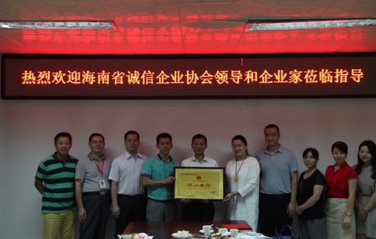 6月29日上午,海南省诚信企业协会(以下简称海南诚协)组织会员单位一行10多人参观海南南国食品实业有限公司(以下简称南国食品),并召开“诚信”主题座谈会暨牌匾颁发仪式。