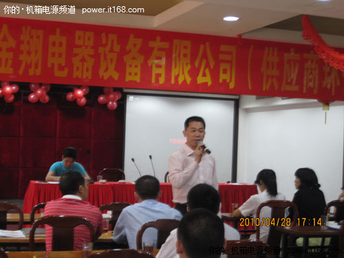 信守“厚德载物,永续经营”的经营理念,金翔公司的总经理周沛池先生也做了重要讲话。周总发言中讲到,中国是2010全球经济的新增长点,电脑外设产业的前景值得我们在座的期待,提出了抓住市场机遇、提高产品质量、优化产业链的思路和目标。并希望,在各位供应商伙伴和金翔紧密合作下,强强联合,从源头上抓起提高产品品质,使我们的产品在国内、国际市场上有强大竞争力,这个需要我们共同去创造、争取。