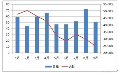 2014年房地产集合信托发行数量及占比