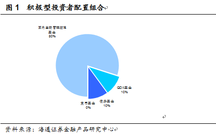 积极型投资者:配置90%的权益类基金、10%的债券基金、其中权益类基金中主要以国内主动型股票混合型基金(80%)和QDII基金(10%)为主。