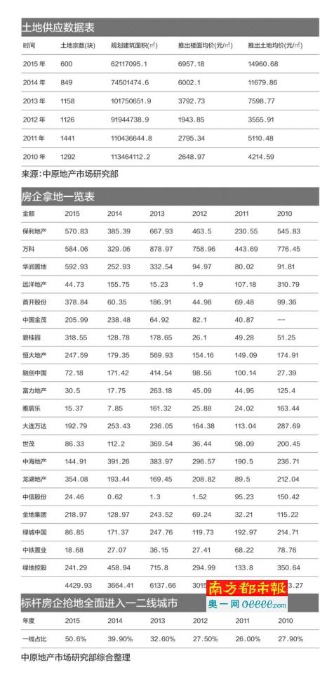 2015房企拿地频率降低,费用增高 20大标杆房企耗资4429亿拿地,是仅次于2013年的历史第二高点 年关将至,土地市场基本落下大幕。南都记者通过对多家大型房企采访发现,今年房企在土地市场的出手频率大大降 ...