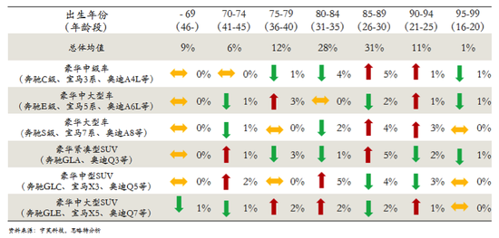 在一线城市,26-35岁是豪华品牌的主力军。在这一组调查中,豪华车车主有超过3成是85后,而90后的比例达到了12%。甚至在起步指导价格接近100万元的奔驰S级产品中,年轻人的比例高于总体平均值。