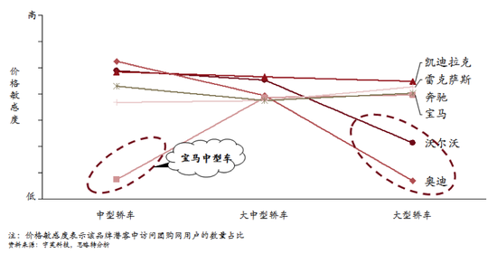 越有钱的车主对价格的敏感度越低,比如说入门级豪华车(奔驰C级别)的潜在消费者价格敏感度差别相对较大一些,而到高级豪华车型(奔驰S级别)则差别很小。具体来看,购买宝马3系的车主是真“土豪”,他们的价格敏感度最低,更重视这个品牌带来的操控乐趣本身。另外奥迪A8和沃尔沃S80L的用户购买这些车型的理由,显然也不是因为其价格相对宝马、奔驰同级别车更便宜。他们某种程度上是真“土豪”。