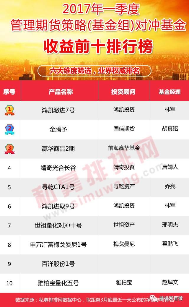 百航进取1号获得第三名。据了解,百航投资凭借该产品获得私募排排网颁发的2016年新锐私募基金管理人奖。