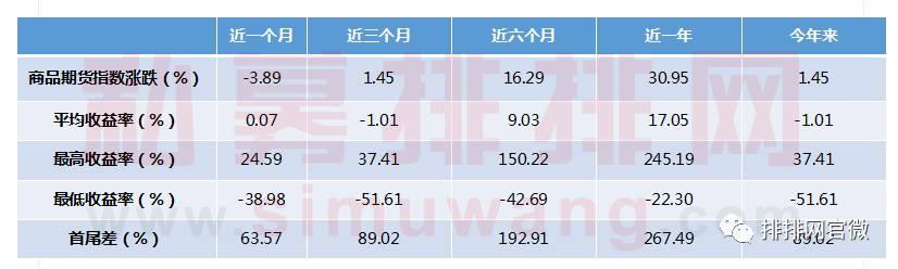 一季度,商品期货市场处于高位区间震荡。从去年12月份算起,截止3月底,商品指数基本形成M头形态,后期下跌概率较大。据私募排排网数据中心统计,3月纳入统计排名的549只期货私募基金平均收益率为0.07%,比2月份下降0.11个百分点。从实现正收益的产品占比来看,3月份实现正收益的产品数量有300只,占比54.64%。3月份最高收益达到为24.59%,比2月份的最高收益下降6个百分点,最大损失超过38%,远大于2月份13%的最大亏损。从以上数据的对比可以看出,3月份期货私募业绩明显不如2月份。