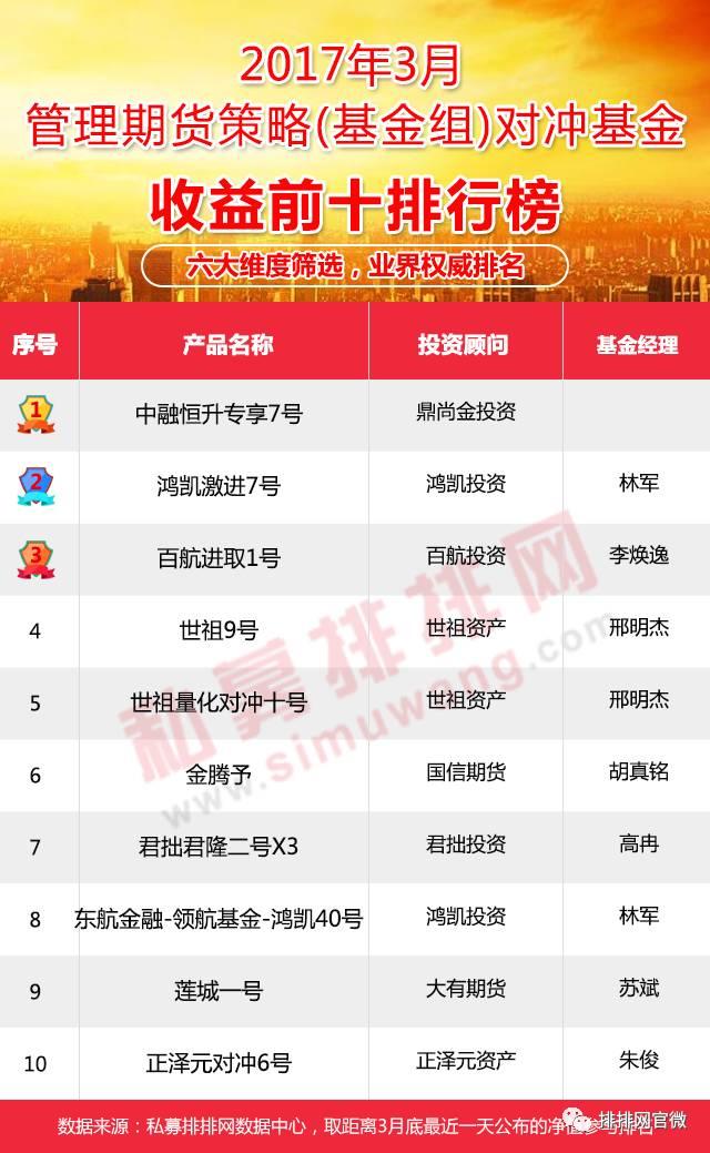 一季度前十名的产品中,鸿凯激进7号和世祖量化对冲十号也在3月份的前十名中,显示鸿凯投资和世祖资产的投资能力在较长时间内都能维持在较高的水平上。