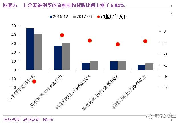 这一点我们可以从以下两个数据可窥一斑:一是与2016年年末相比,金融机构贷款利率小于等于4.35%的比例缩减了5.84%,相应地,在4.35%以上的贷款利率比例基本都增加了1%以上。