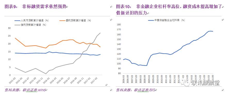 与融资不通畅相对的,则是企业借新还旧的资金需求,融资成本上升进一步加大了现金流压力。根据BIS估算,2016年3季度中国非金融企业杠杆率为166.2%,虽较当年2季度略有回落,但仍处于高位。各种融资渠道的成本上升后,企业需要支付更多的财务费用。