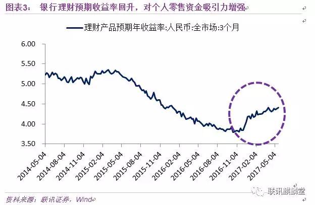 一是在银行中长期同业资金利率狂飙后,债券资产的收益率也已经有了大幅调整,带动了以银行理财为代表的资管产品预期收益率的上涨,对于个人零售资金的吸引力进一步加强。