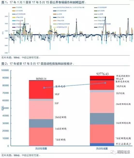 【流动性动态监测】我们对市场流动性情况进行跟踪,观测2017年开年来至今流动性的“投与收”。增量方面,我们根据逆回购、SLF、MLF等央行公开市场操作、国库现金定存等规模以及2017年3月对比2016年12月财政存款累计减少1485亿元计算总投放量;减量方面,我们根据2017年3月对比去年12月M0累计上升301.2亿元、外汇占款累计下降3216亿元,粗略估计通过居民取现和外占下降流失的流动性,并考虑公开市场操作到期情况,计算每日流动性减少总量。同时,我们对公开市场操作到期情况进行监控,以此来更加深入和广泛地跟踪流动性变化情况。