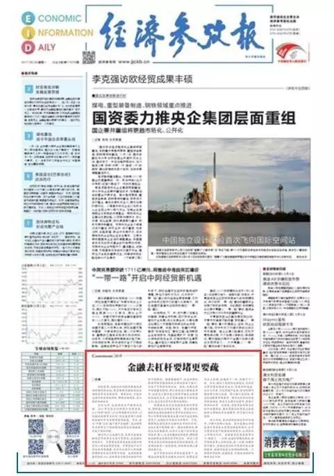 此外,由新华社主管主办的《经济参考报》刊发了《金融去杠杆要堵更要疏》文章,文中提到: