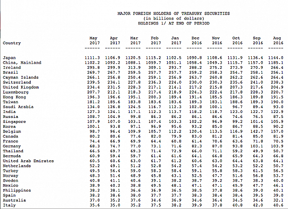 美国财政部周二公布数据显示, 5月末,中国持有美国国债规模环比增加100亿美元,达到1.10万亿美元,为七个月来最高水平。