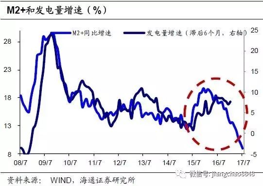 考虑到数据的可得性,我们考虑了企业和居民购买的理财产品总量,构建M2+指标,发现尽管M2+同比增速也是在16年就开始下滑,但直到去年年底也仍在16%以上的高位,今年以来M2+增速下滑速度加快,也预示着未来经济的下行压力在增大。