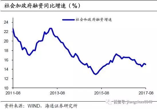 需要注意的是,社融指标只是衡量居民和非金融企业的融资状况,并没有统计政府的融资状况,银行通过非银机构对实体提供的融资部分也没有完全统计进去,所以今年以来,社融指标和货币指标走势会出现脱离的状况。如果将社会加政府融资加总来看,融资增速和货币增速指标其实是一致的。