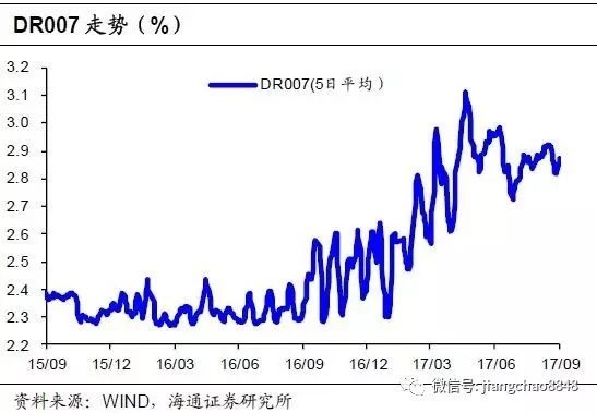 8月下旬以来,央行大幅回笼货币,本周再度开始投放呵护资金面,“削峰填谷”意向明显,但从市场利率来看,DR007仍处于2.8%以上的历史高位,货币仍维持紧平衡。近期市场传言或呼吁降准,尽管汇率压力短期减轻为货币政策操作释放了一定空间,但当前经济并未失速下滑,防风险、抑泡沫仍是主旋律,且降准信号意义过强,与金融去杠杆的初衷相背离,所以我们认为短期内不大可能出现降准。