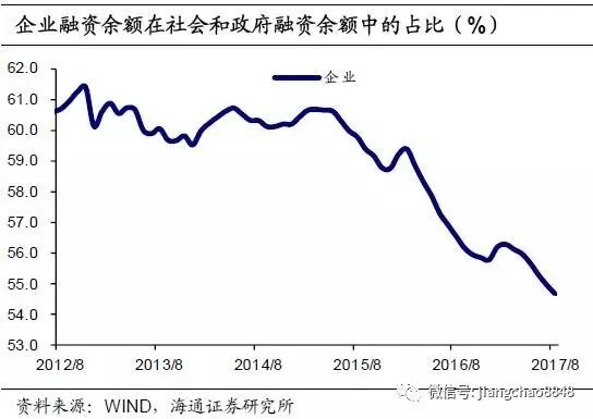 8月企业贷款增长了4830亿,其中的中长贷增长3639亿,同比均多增。在表外融资低迷的情况下,信贷仍是企业融资主要途径。而企业表外融资途径中,除了债券净发行少增了2200亿以外,委托、信托贷款、表外票据融资也少增了近500亿。所以整体上今年以来企业融资是受限的,企业在社会和政府融资余额中的占比从年初的56%以上降至当前的不足55%。